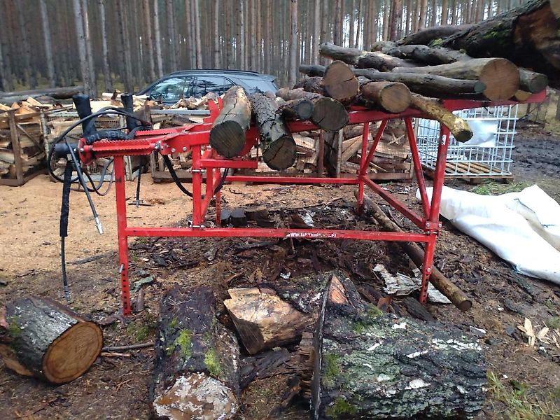 in serienmäßiger Ausstattung - mit hydraulischer Stammvereinzelung - hydraulische Stachelwalzen zur Querförderung - Hydraulikkupplungen passen an KRPAN Säge-Holzspaltgerät CS 4218 - anbei Einsatzbilder - Gerät jetzt auf Transportmaß zerlegt