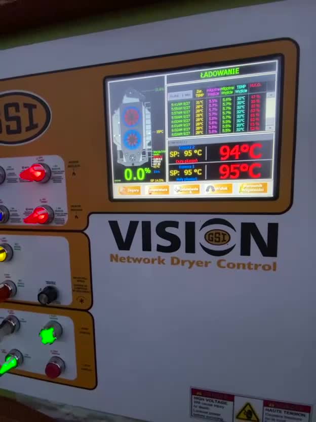 Granulowane suszarka wyposażona jest w kontrolę wilgotności w zbożu przychodzącym i wychodzącym, kontrolę temperatury ziarna i kontrolę temperatury komory spalania.